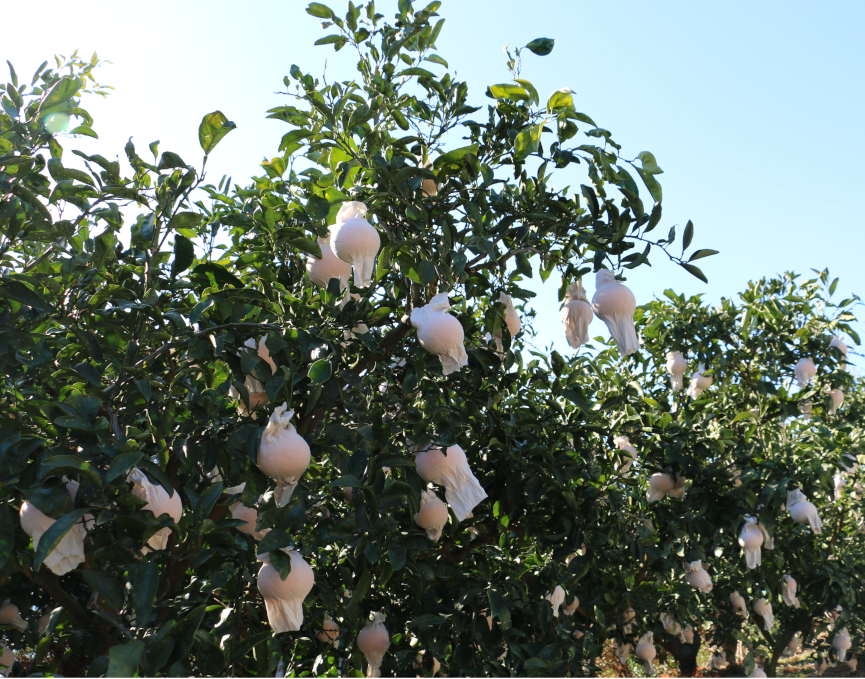 袋がけをして果実を守ります。